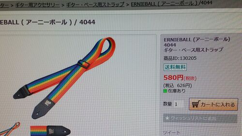 先日、リサイクルショップで入手したベースを調整していただいた話を書きました。 hikiblo.hateblo.jp この一際目立つ(であろう)個性的なベースに取り付けている、これまた一際目立つ虹色のストラップ。 実は一部が切れ始めています。 ・・・暗い状況で撮影し…